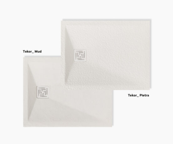 The shower trays of the Tekor line are made from a mineral composite with a resin film that covers the surface and edges to guarantee excellent physical and chemical resistance over time. This technology makes the shower tray resistant, durable and suitable for everyday use, ideal for modern and functional bathroom spaces. In the Tekor Mud version, the linear design is accentuated by the smooth texture and slim build, ideal for a modern look. In the Tekor Pietra shower tray, meanwhile, the stone-effect finish adds a natural touch to the shower and guarantees a pleasant, relaxing experience