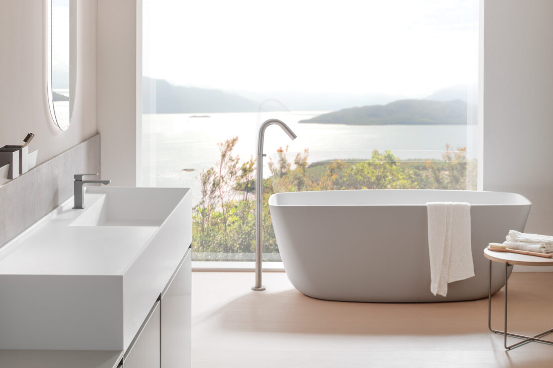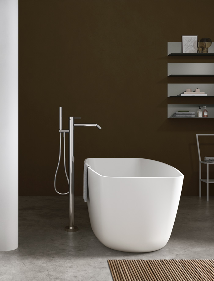 Blanche ou personnalisée en laqué mat, la baignoire freestanding moderne Victoria allie un design essentiel à des dimensions équilibrées pour s’intégrer facilement dans les projets d’aménagement de salle de bain.