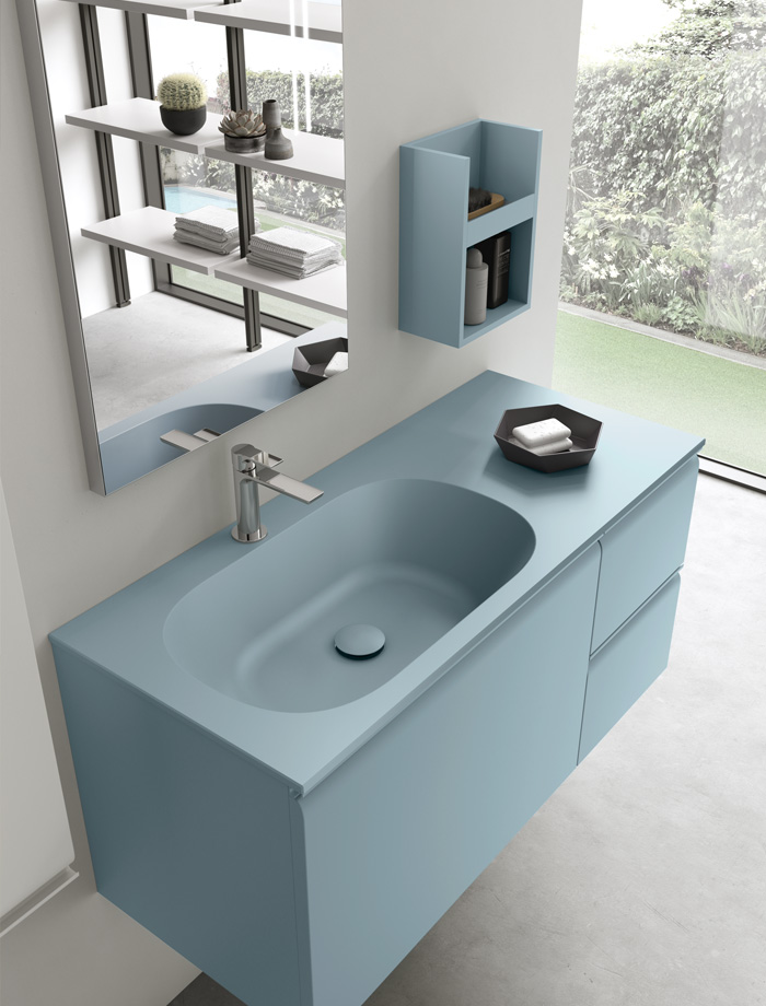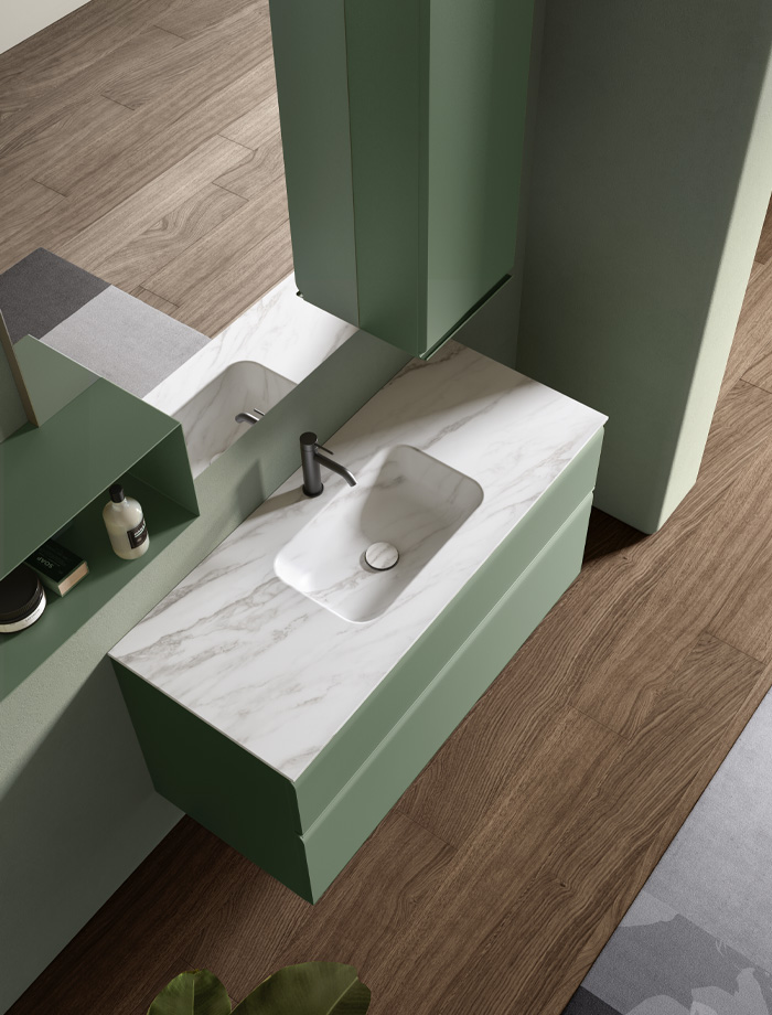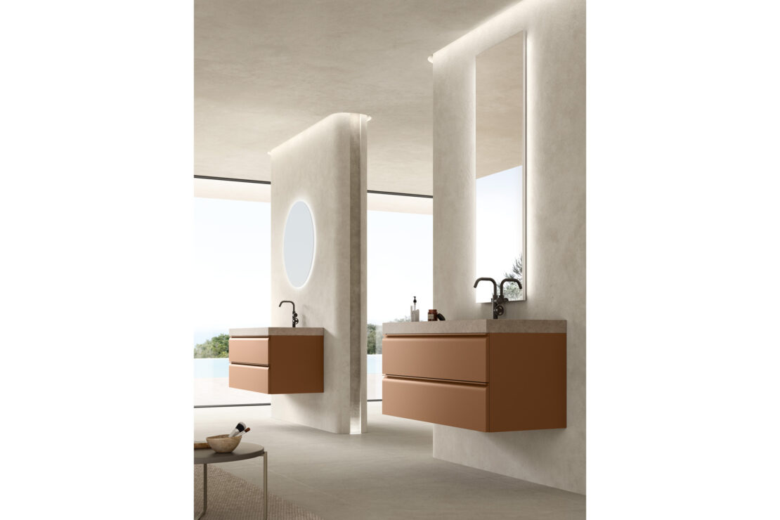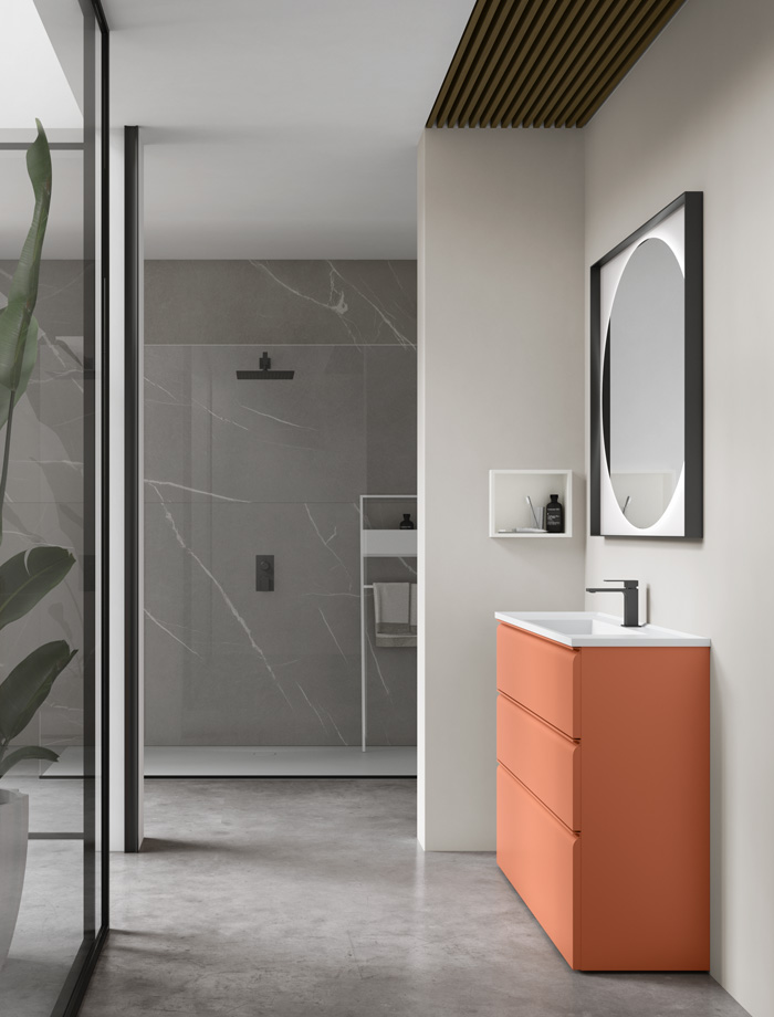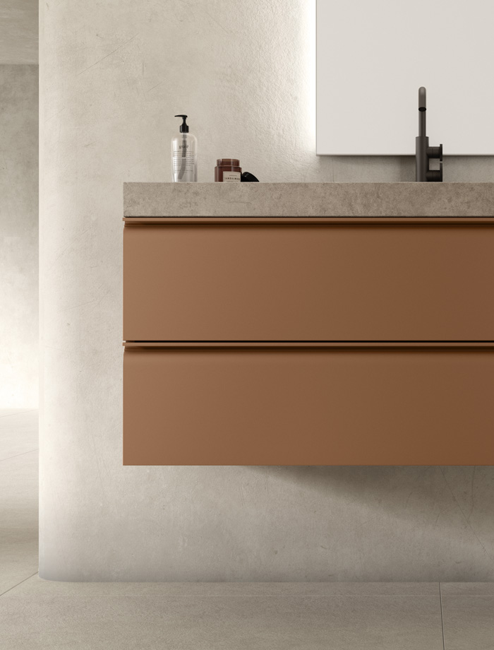 La collection est proposée exclusivement dans une large sélection de tonalités laquées mates, idéales pour les salles de bain au style minimaliste et contemporain.