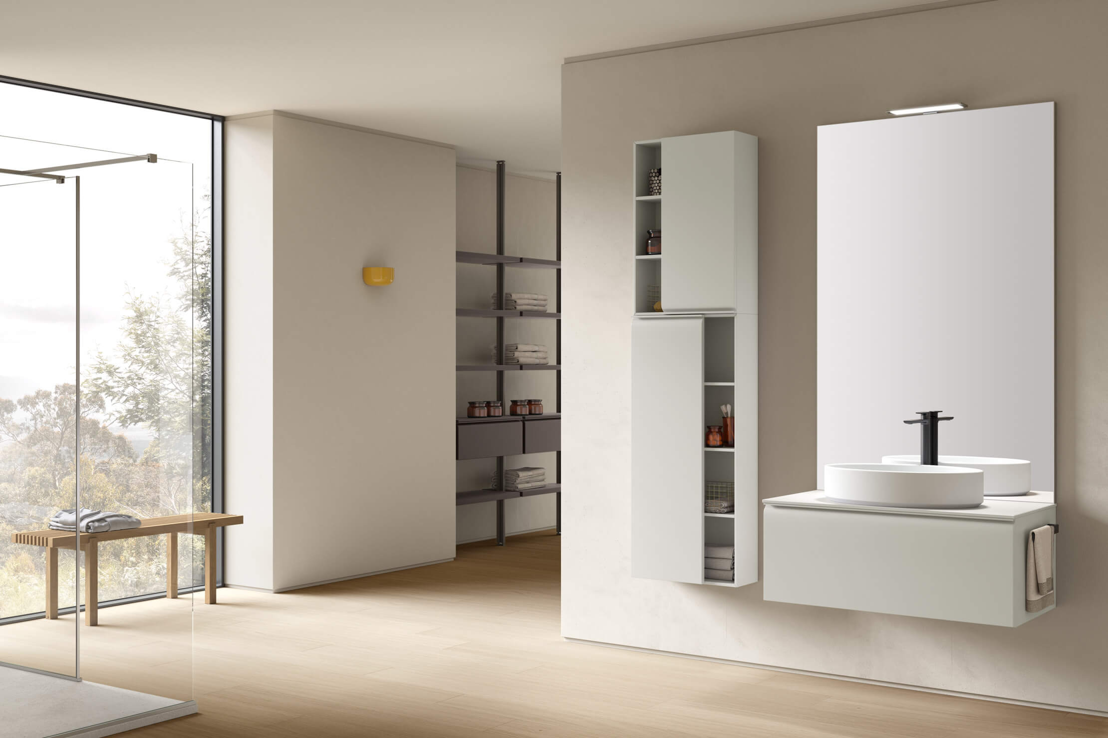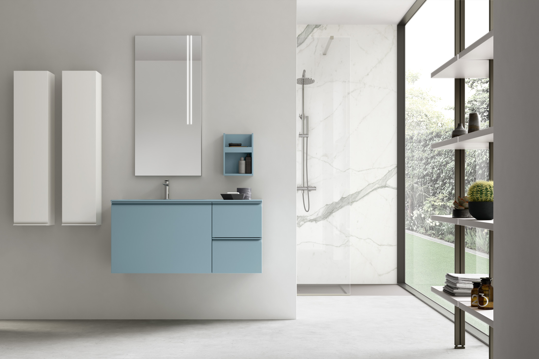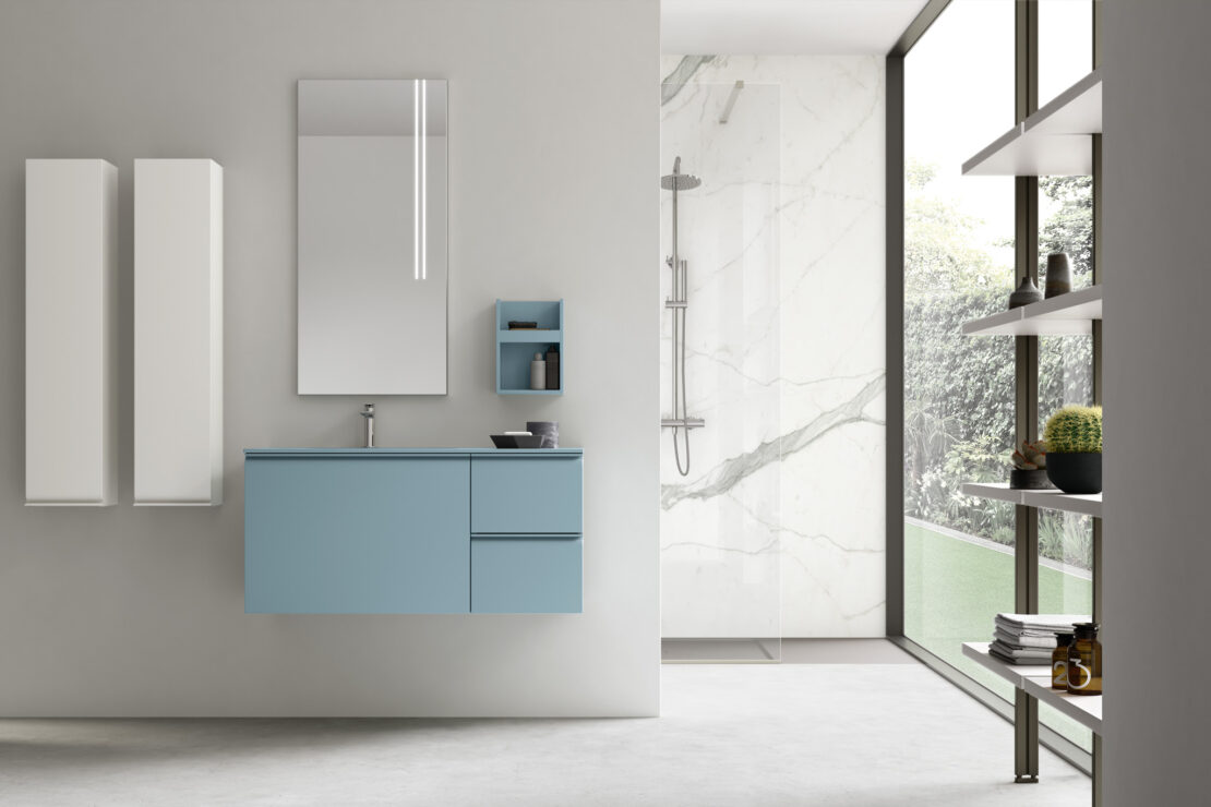 La collection est proposée exclusivement dans une large sélection de tonalités laquées mates, idéales pour les salles de bain au style minimaliste et contemporain.