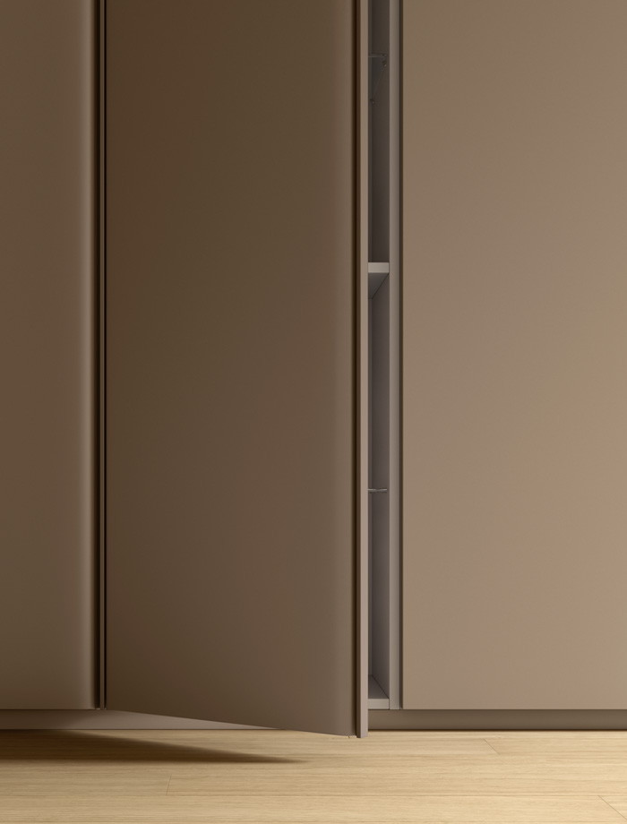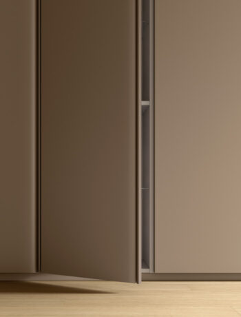 La poignée en métal peut être assortie à la finition de la porte ou proposée en contraste, pour une touche distinctive et personnalisée.