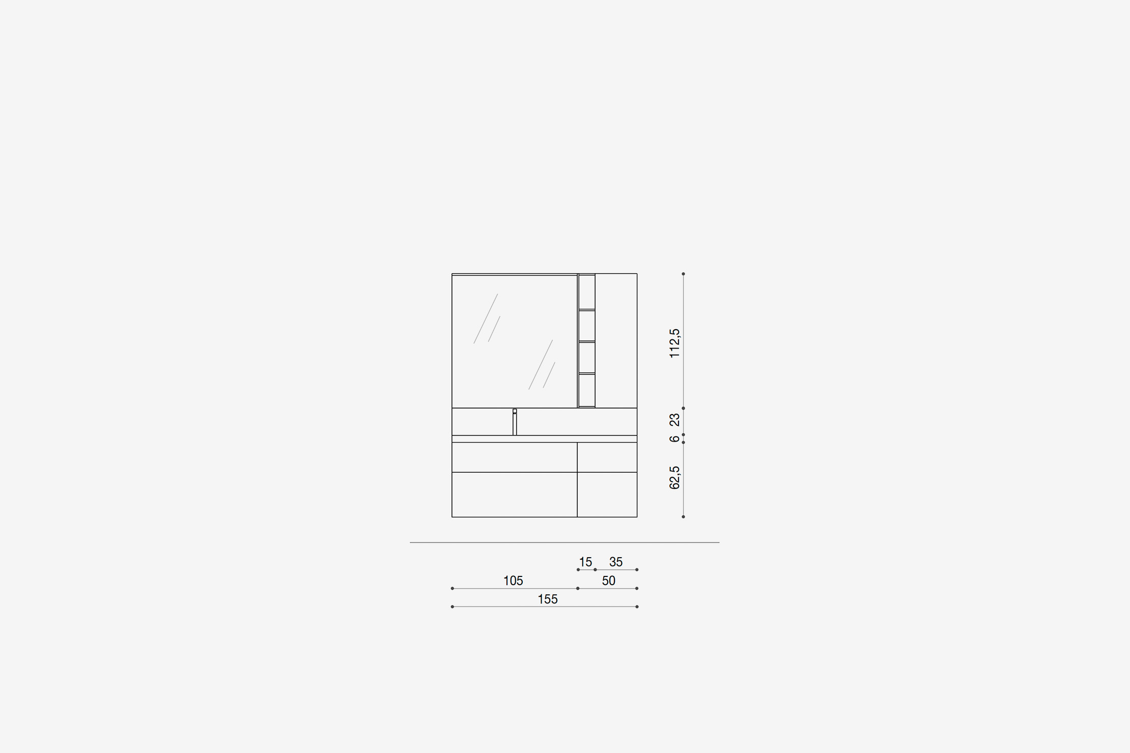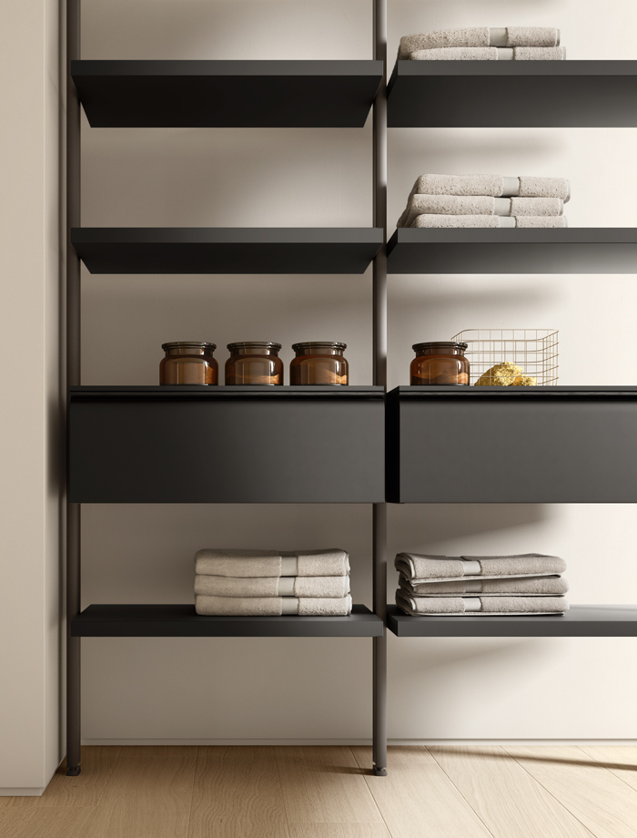 Plusieurs colonnes juxtaposées créent des armoires spacieuses, avec une prise verticale pratique sur toute la hauteur. Une idée d'ameublement parfaite aussi bien pour la salle de bain que pour les zones de service.