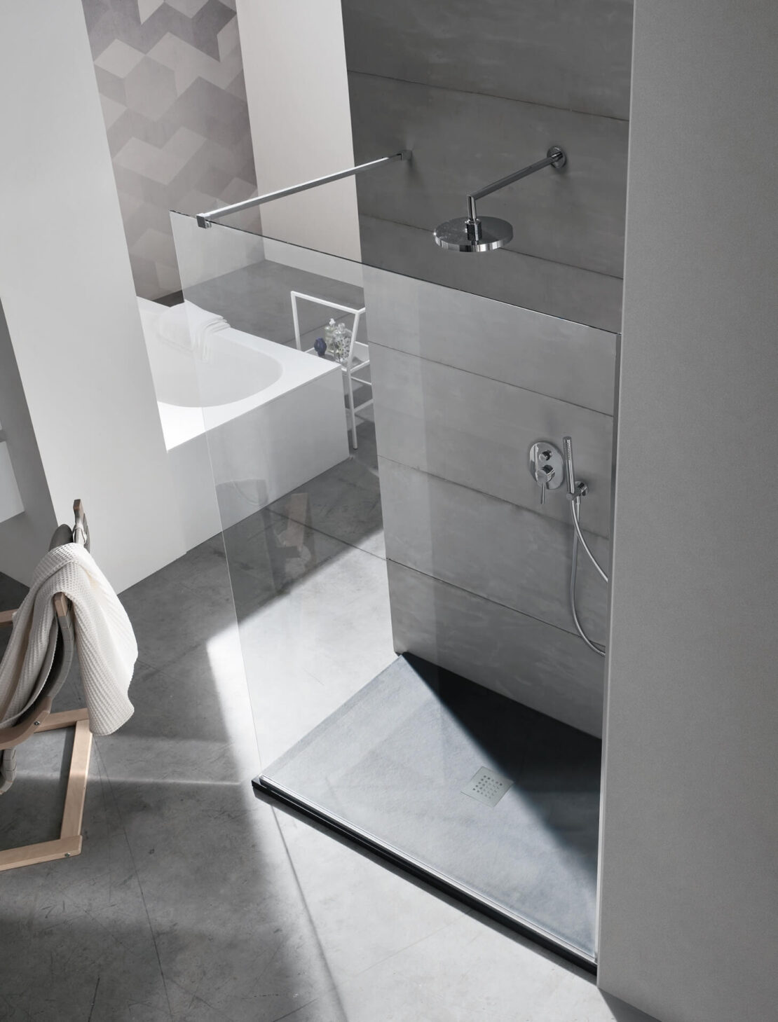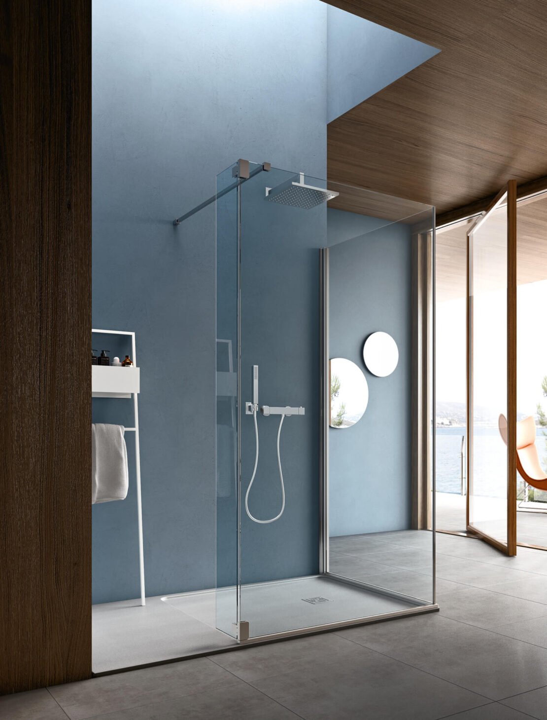 Il box doccia walk-in definisce uno spazio doccia moderno, essenziale e facilmente accessibile. Non ci sono ante per entrare e uscire, tipologia ideale per vivere liberamente l’ambiente doccia.