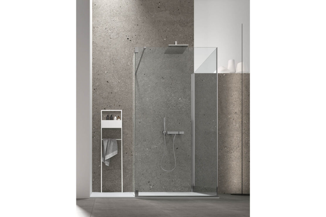 Il box doccia walk-in definisce uno spazio doccia moderno, essenziale e facilmente accessibile. Non ci sono ante per entrare e uscire, tipologia ideale per vivere liberamente l’ambiente doccia.